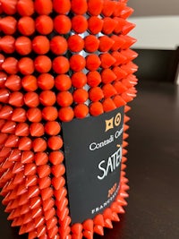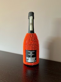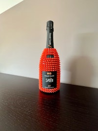 The bottle counts more than 600 red spikes that have been applied by hand, in a precise sequence, one by one.
