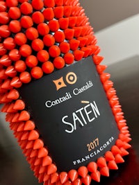 This 2021 Contadi Castaldi Satèn 0.75l was customized in June 2022. With a lot of patience and passion we were able to dare a particular visual effect to this Franciacorta. Contadi Castaldi is one of the most known Franciacorta in Italy, produced in Adro.